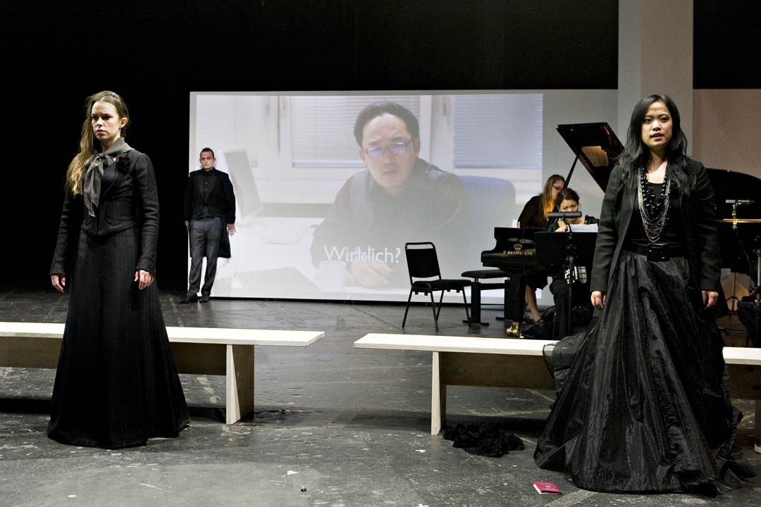Komposition Eunsun Lee, Calogero Scanio, Anno Schreier / Musikalische Leitung Lennart Dohms, Volker Perplies, Lena-Lisa Wüstendörfer / Regie Alexander Charim, Nelly Danker, Kami Manns, Sophia Simitzis / Choreographie Cristina Czetto / Raum & Kostüme Agnes Fabich, Anja Kerschkewicz / Graphik Julia Rommel / Video Manuel Graubner, David Schnägelberger / Dramaturgie Minou Arjomand, Bernhard F. Loges / Produktonsleitung Dorka Batizi, Thomas Eisenträger