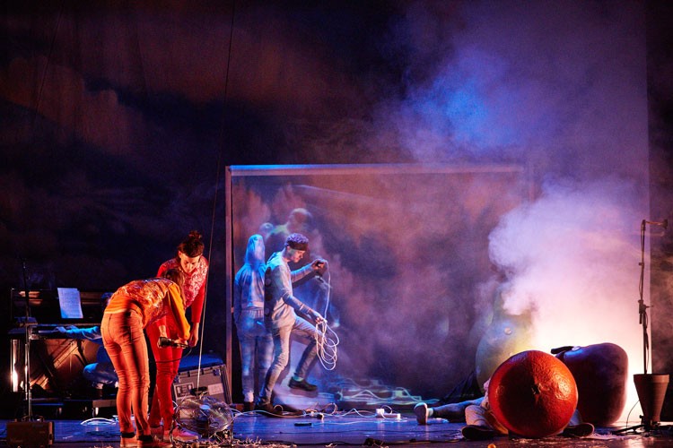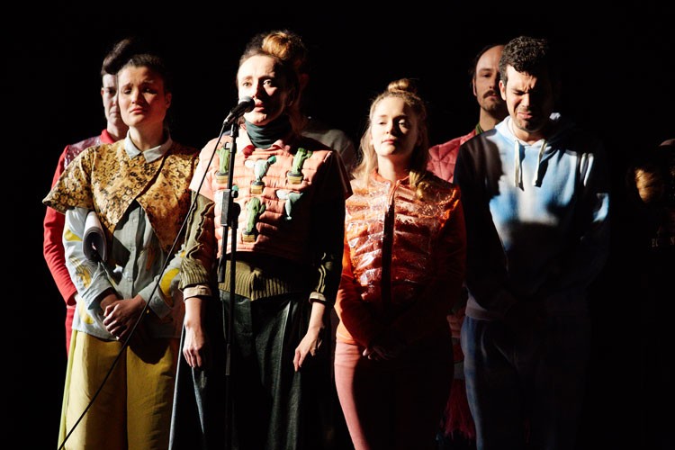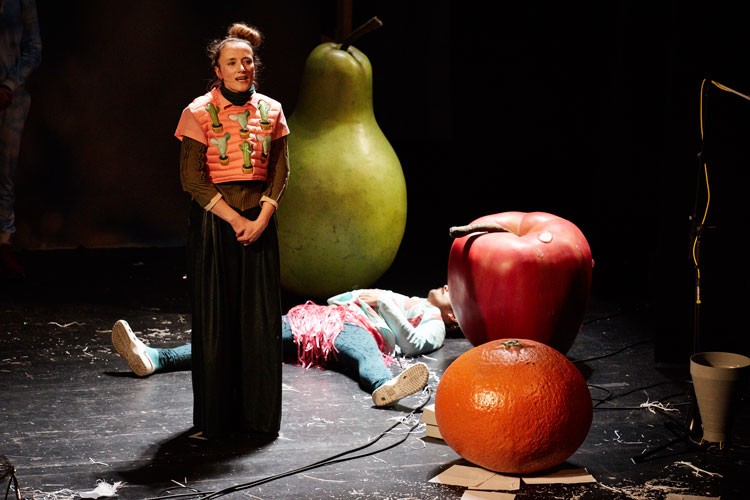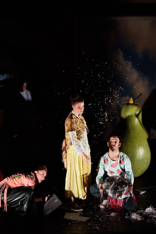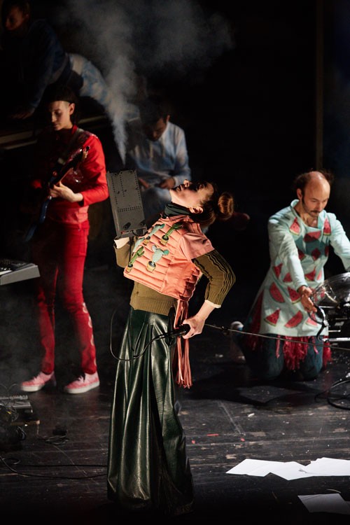DAS WORT IST MEIN ANZUG* 14.11.2015 23h / 15.11.2015 21:30h / St. Pauli Theater Hamburg / Kiezstürmer Regie Anja Kerschkewicz / Auszüge nach einem Text von Sandra Gugic / Es spielen Leon Ullrich, Marion Gretchen Schmitz, Florentine Weihe / Musik Lena Geue, Klaas Hübner, Panagiotis Iliopoulos, Martina Lenzin, Meredith Nicoll / Bühne Andrea Rickhaus / Kostüme Felina Levits / Dramaturgie Anne Brammen / Regieassistenz Kristina Mücke /// *Titelverwendung mit freundlicher Genehmigung der Autorin des gleichnamigen StücksFotos Robert Schlossnickel